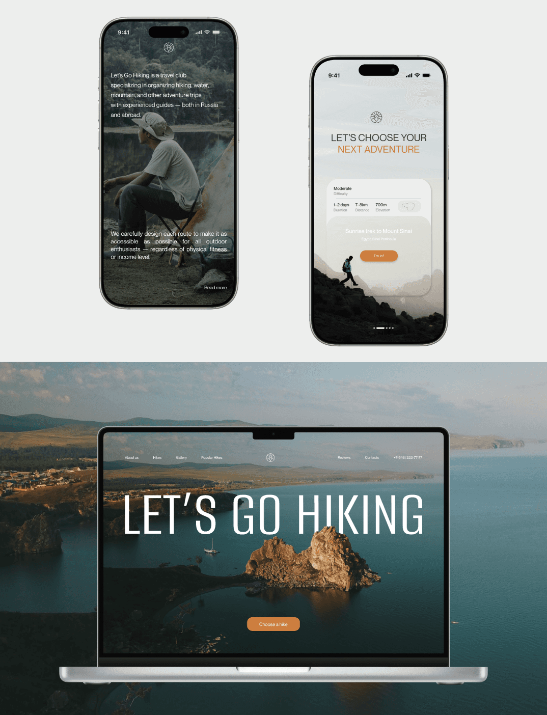 I created a cohesive web concept for the hiking club “Let’s Go Hiking”: from audience research and site structure to the visual system and responsive design.